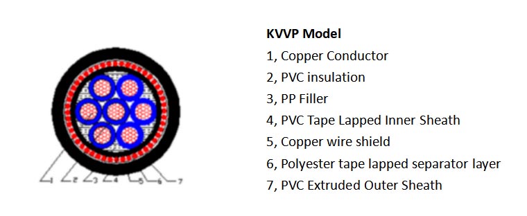 KVVP Shielded kontrol kabel anti-gangguan cocok kanggo sambungan ing kontrol, ngawasi lan pangayoman